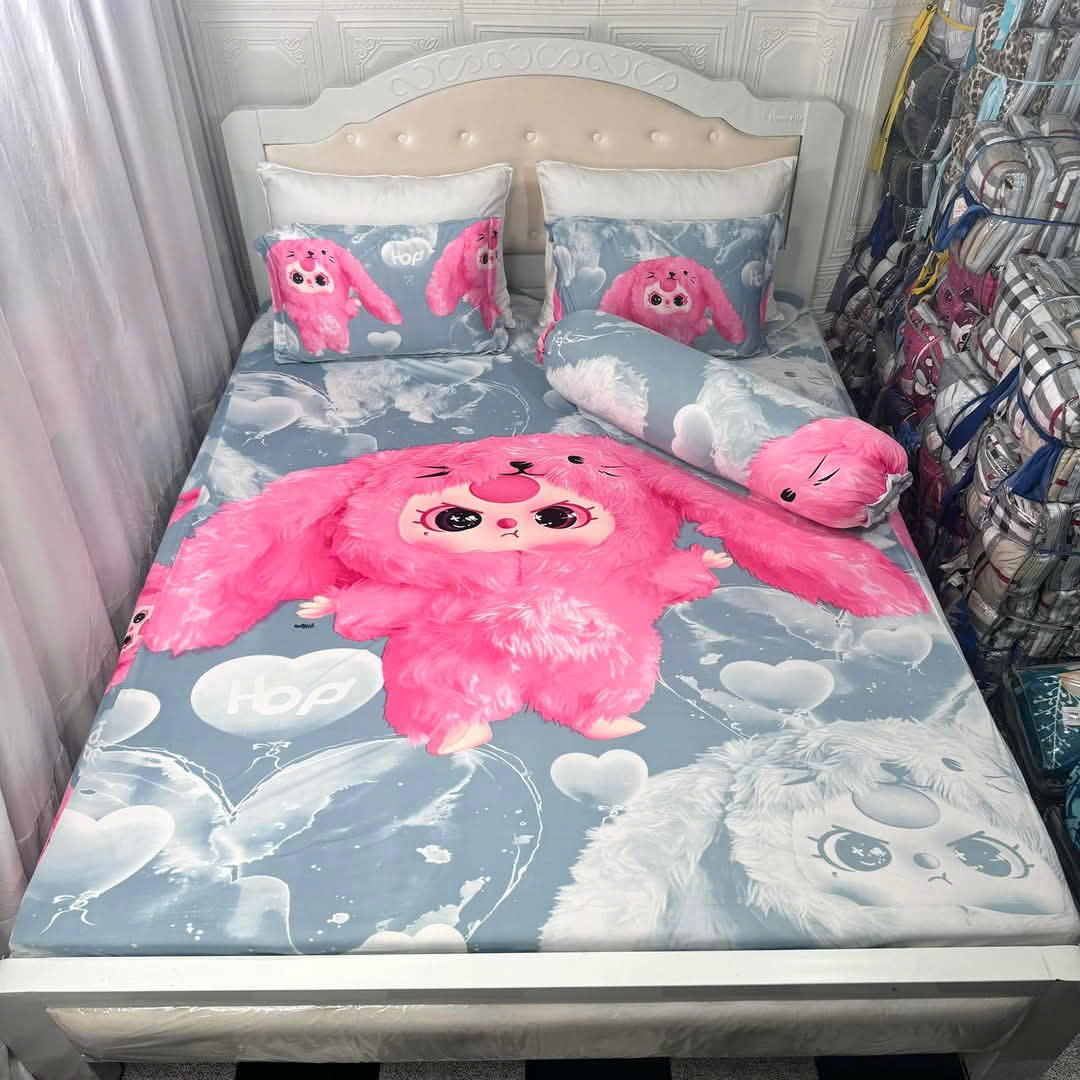 Bộ Ga Thun Mẫu THỎ XÁM