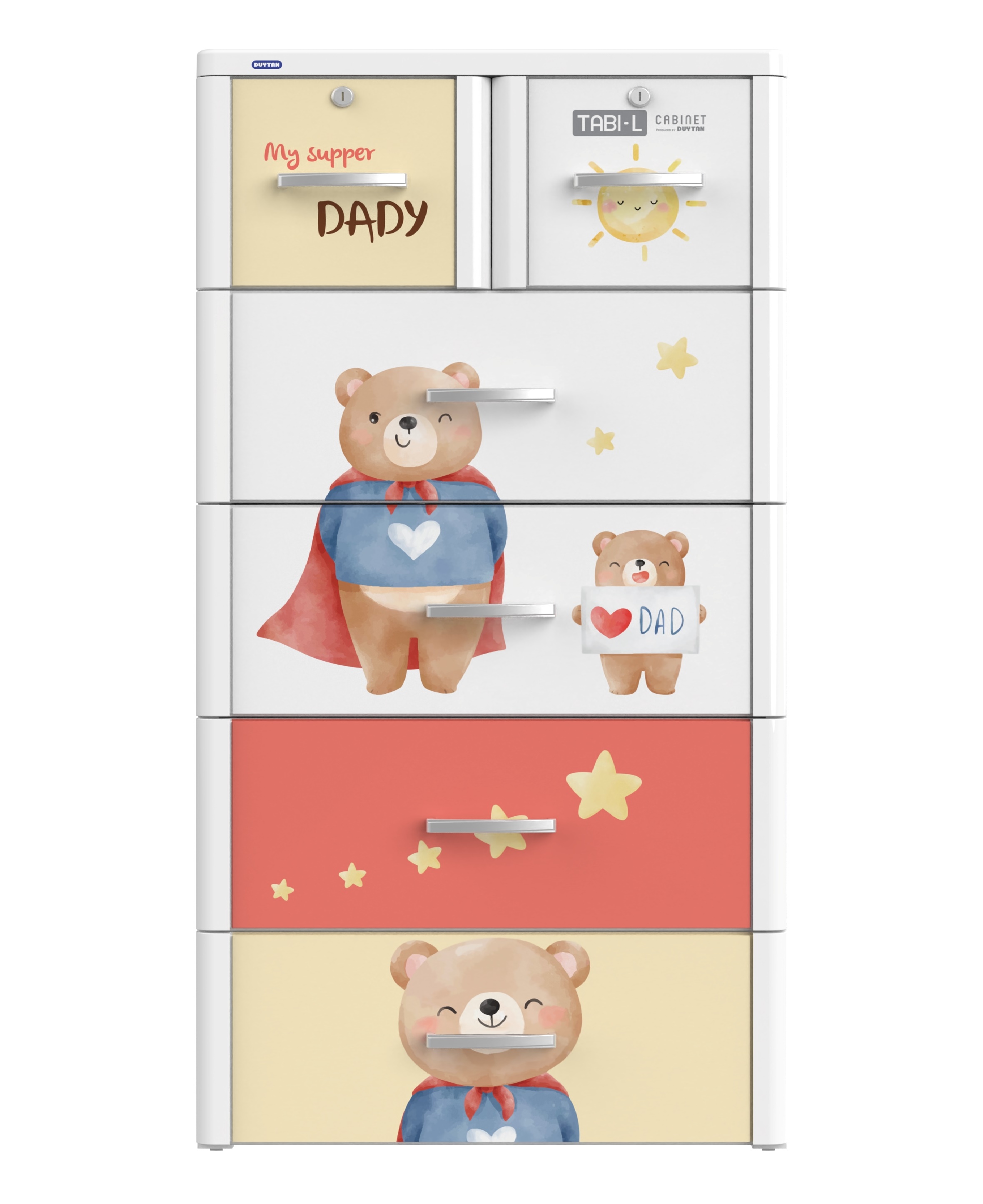 Tủ nhựa Duy Tân Tabi L là dòng sản phẩm tủ nhựa Cao cấp có kích thước lớn nhất của Duy Tân, mặt tủ có ốp Meca và có khóa ở 2 hộc trên với rất nhiều thiết kế rất đẹp và sang trọng.