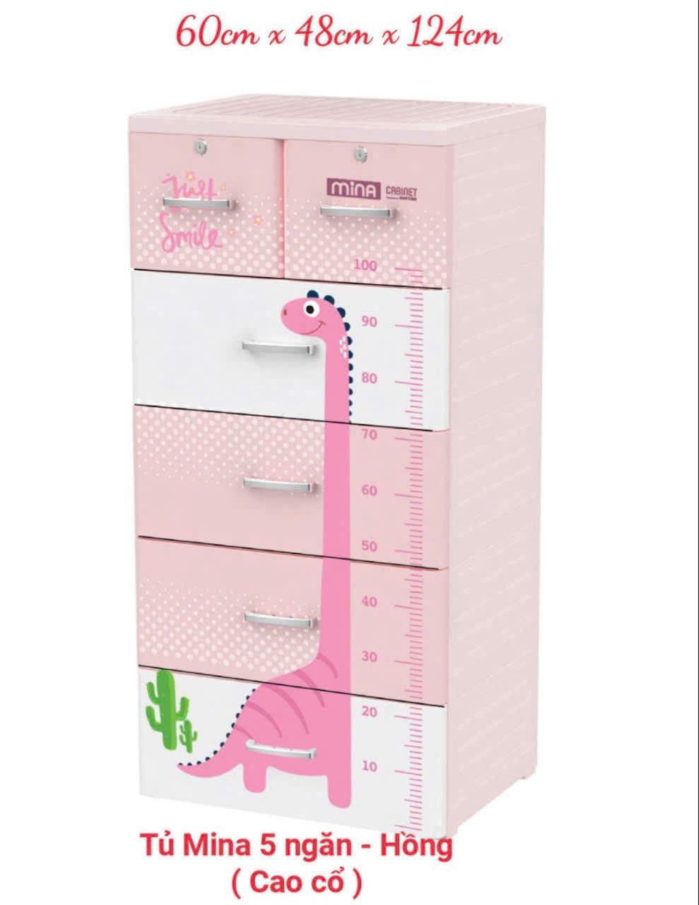 Tủ nhựa Mina 5 tầng Hồng khủng long