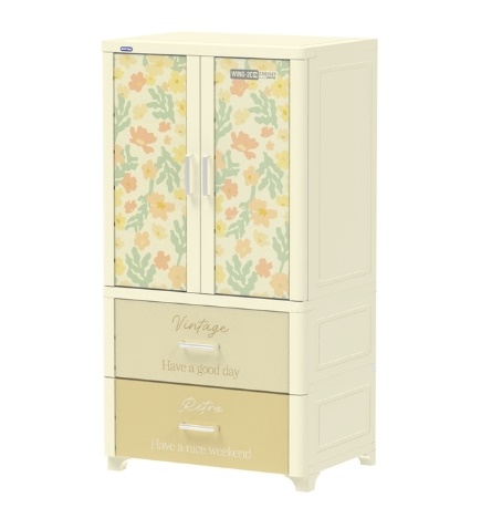 Tủ nhựa Wing 2 cánh 2 hộc - Kem hoa mới