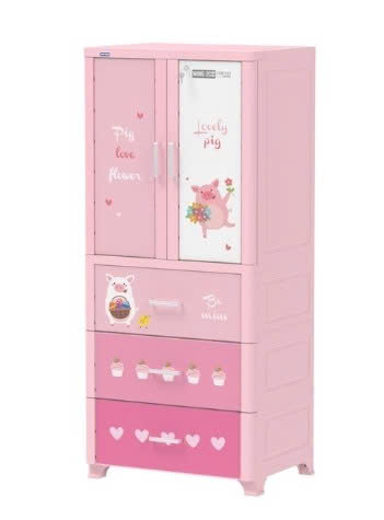 Tủ nhựa Wing 2 cánh 3 hộc - HỒNG HEO CON